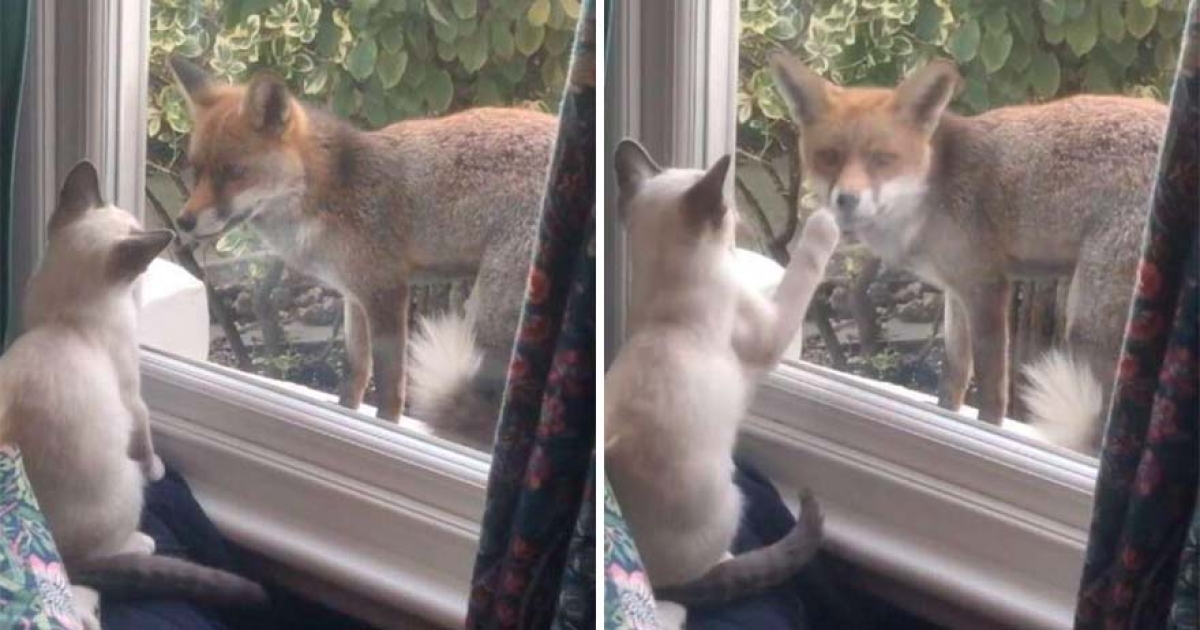 可愛小狐狸每天敲窗串門! 與家貓隔窗互動:我有帶伴手禮喔♡