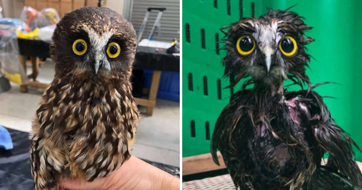 蓬鬆「小貓頭鷹」洗藥浴大消風! 「虛胖體型」曝光奧嘟嘟:就說我鼻要洗澡~