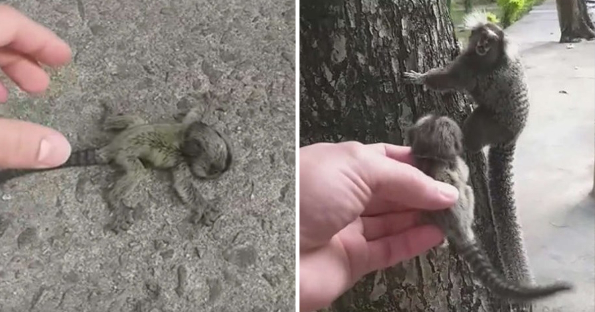 地上發現小猴子…抬頭發現猴媽「焦慮不知所措」 善心男助「絨猴母子團圓」超溫馨